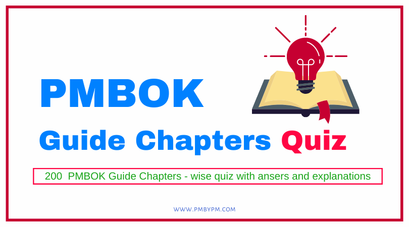 The best way to check and self-assess your knowledge is to take a quiz. This quiz is based on the PMBOK® Guide 6th Edition. It contains questions from all the chapters of PMBOK® Guide 10 Knowledge Areas (KA).